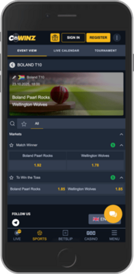 Cwinz سپورٹس بک مختلف کھیلوں کے لیے وسیع بیٹنگ مارکیٹس پیش کرتا ہے۔ کھلاڑی فٹبال میں میچ کے نتائج، ڈبل چانس، گولز ہینڈی کیپ اور ٹوٹل گولز پر شرط لگا سکتے ہیں، جبکہ کرکٹ میں میچ ونر، ٹاس، ٹاپ بیٹر اور سب سے زیادہ چھکے جیسے اختیارات دستیاب ہیں۔