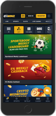 - Cwinz پر اسپورٹس بک اور کیسینو میں کھیلیں اور ہر ہفتے 20% کیش بیک حاصل کریں! سلاٹس، لائیو کیسینو یا اسپورٹس پر بیٹنگ کریں اور اپنا کیش بیک ہر پیر کو وصول کریں۔